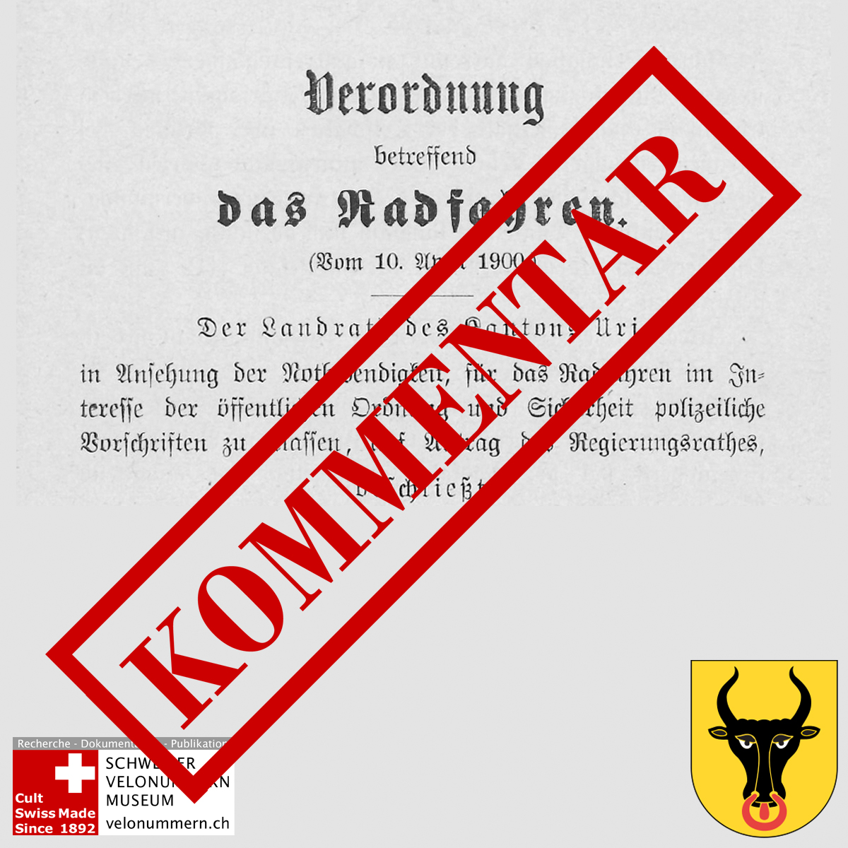 Nebst einer Anzahl von zuverlässigen Quellen, welche ineinandergreifen und alle auf das Fehlen von Kennzeichen hinweisen, haben wir also keinen einzigen Hinweis gefunden, dass es im Kanton Uri vor dem Beitritt zum 2. Konkordat Fahrzeug-Kennzeichen gibt. Also können wir davon ausgehen, dass die Kennzeichen im Kanton Uri für Motorfahrzeuge und Fahrräder erst im Zuge des 2. Konkordat mit Wirkung ab 29. Mai 1912 eingeführt werden.