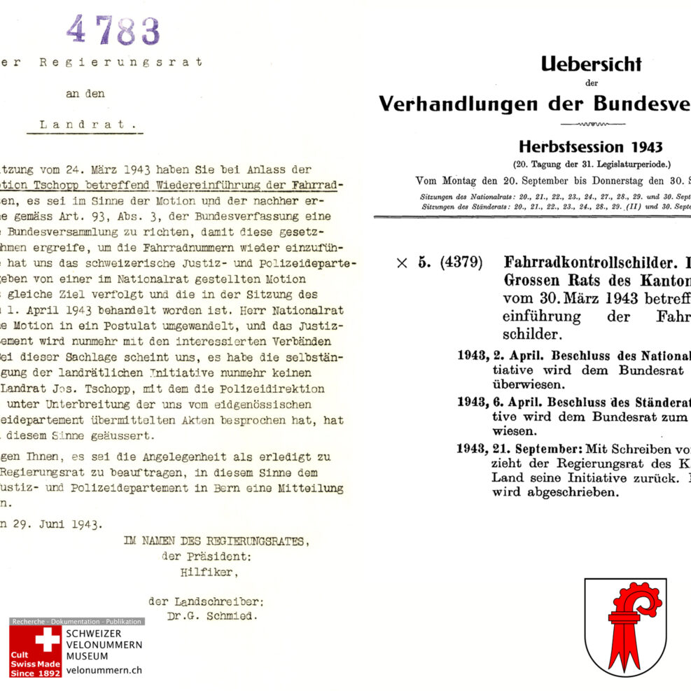 1943 BL Standesinitiative zur Wiedereinführung Kontrollschild