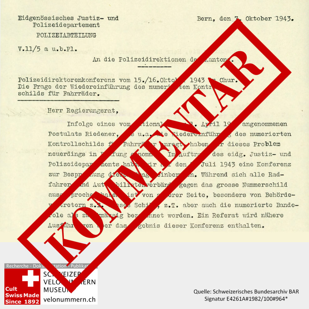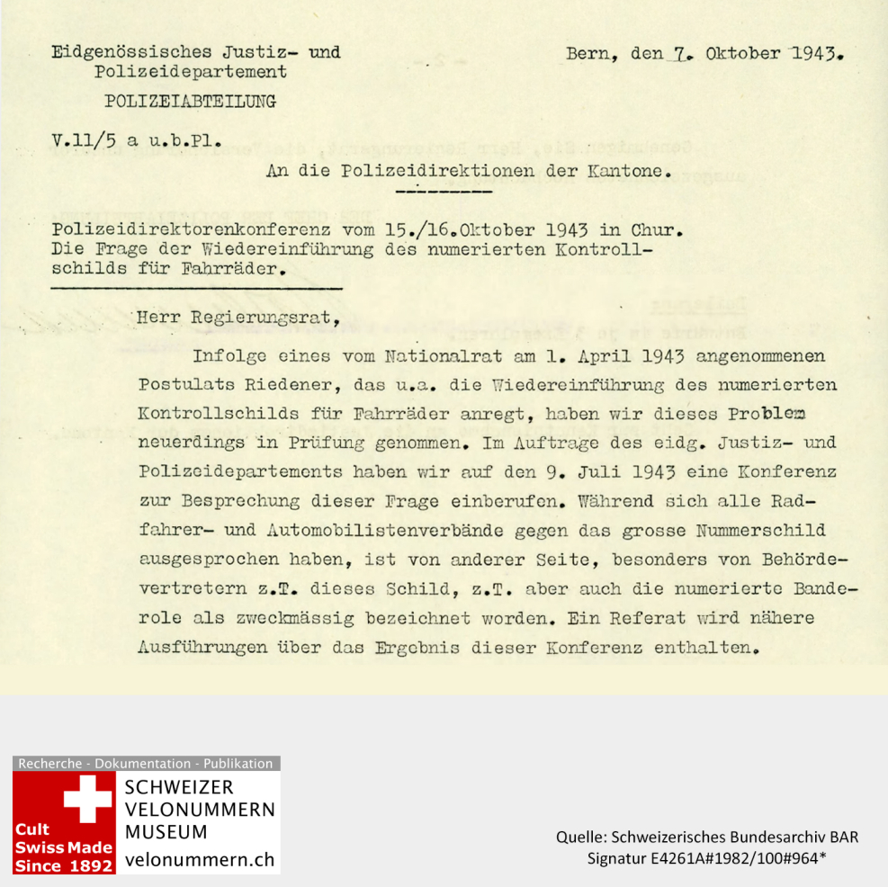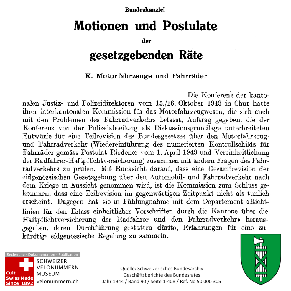 1943 SG Postulat Wieder-einführung nummerierter Kontrollschilder