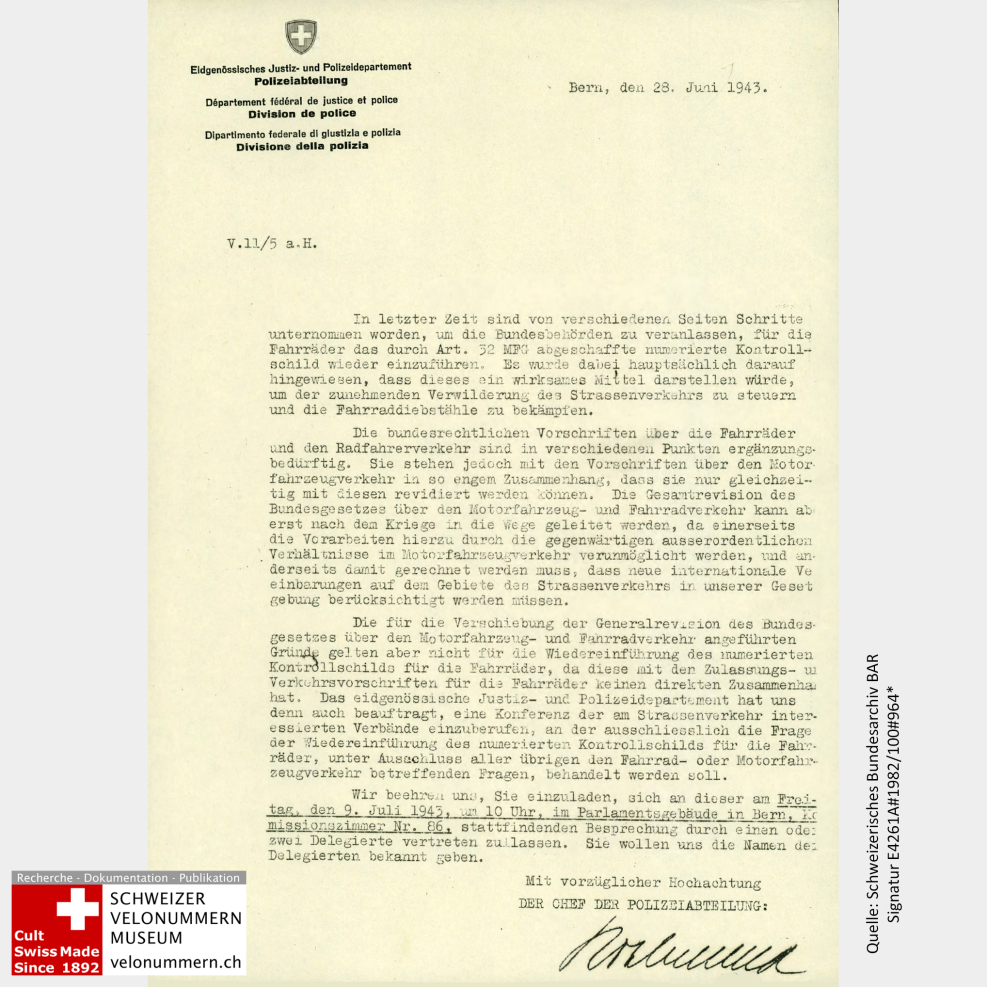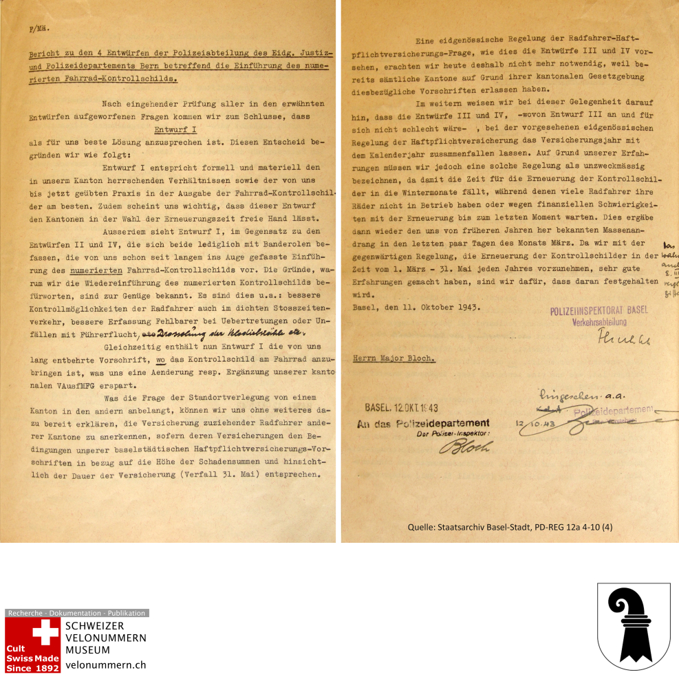 1943 BS Wiedereinführung Kontrollschild – Bericht zu EJPD Vorschlägen