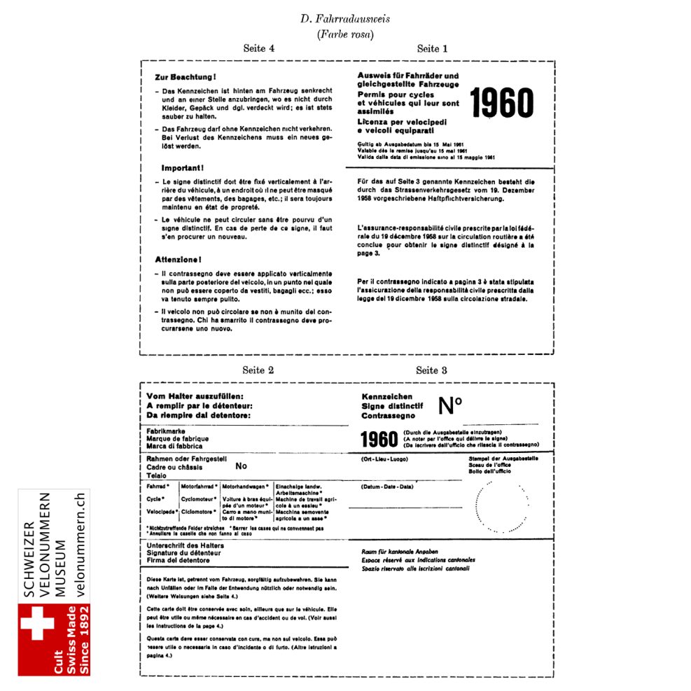 1962 Fahrradkennzeichen Schweizer-Norm-Design