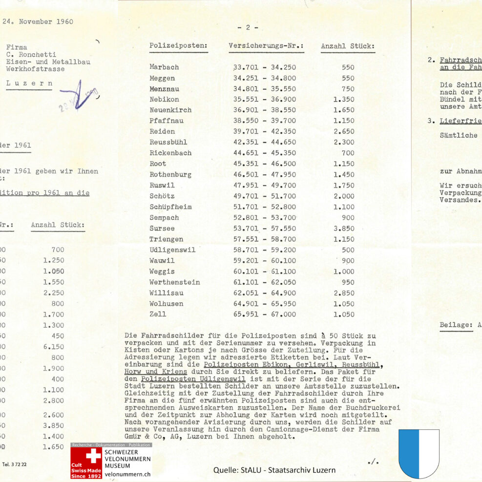 1960 LU Auftrag Produktion Velonummern Jahrgang 1961