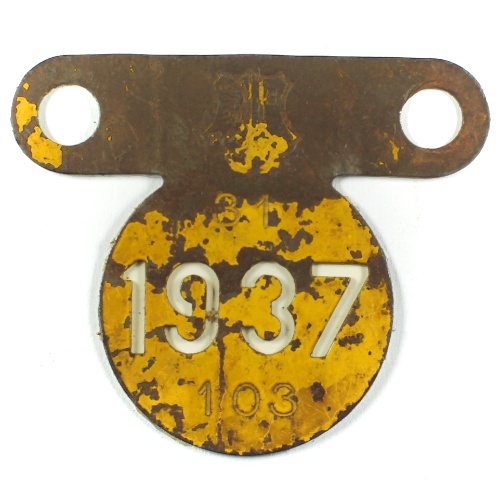 Eine schweizweit einmalige Form brachte der Kanton Genève 1934 bis 1938 heraus. Das Fahrradkennzeichen war aus Eisen, 7.8 x 6.3 cm gross und hatte einen mit vier Ziffern ausgestanzten Jahrgang. Das Genfer-Design war rund und hatte oben nach links und rechts zwei flügelartige Verlängerungen für die Befestigung. Wie diese Befestigung am Velo gedacht war, ist noch nicht schlüssig. Wissen Sie es?