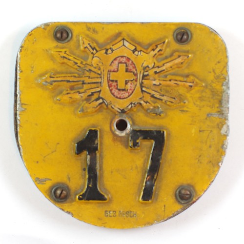 Ob es sich hierbei um ein Fahrradkennzeichen (Velonummer) oder eher für ein Kennzeichen für ein Motorrad handelt, ist nicht zweifelsfrei geklärt. In der Sammlung «Museum für Kommunikation» werden zwei ähnliche Schilder als Motorradkennzeichen bezeichnet [LINK]. Allerdings ist der in unserer Sammlung gezeigte Kennzeichen-Typ (dieses Bild) in der Sammlung des Museums für Kommunikation nicht enthalten.