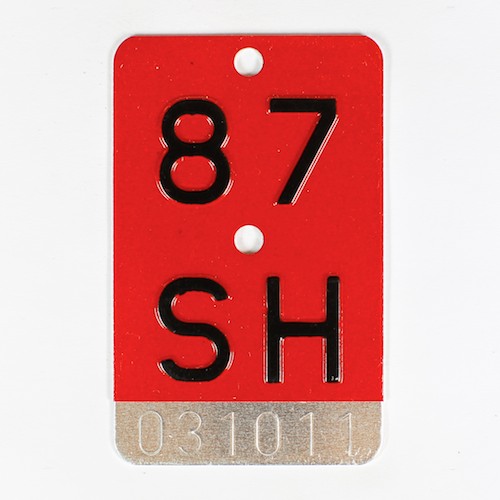 Pour les plaques datant de 1956 à 1988, une image type est présentée dans la boutique. Cela signifie que le client reçoit une plaque comparable de la même édition (année / initiales). Le fournisseur ne vend pas de plaques avec des pièces manquantes ou des perçages non originaux. Cependant, les rayures, les légères décolorations et les traces de montage sont courantes.