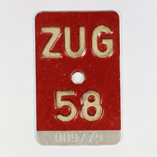 Als letzter Kanton schreib Zug seinen Namen auf den Fahrradkennzeichen von 1953 bis 1960 voll aus.