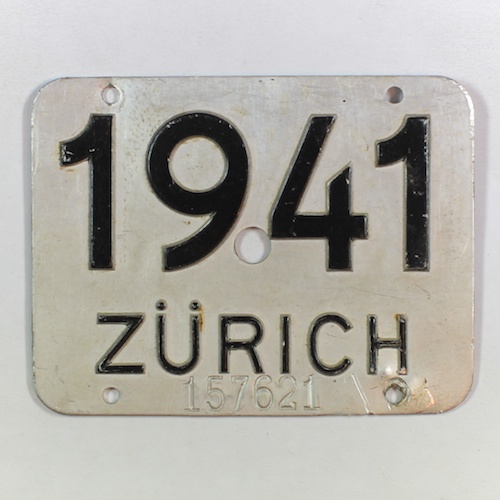 Dieses Bild zeigt das erste, nach dem Verbot von 1933 auf der Vorderseite nummerierte Fahrradkennzeichen des Kantons. Damit war er einer der wenigen, welche die Velonummern nie auf der Rückseite nummeriert haben.