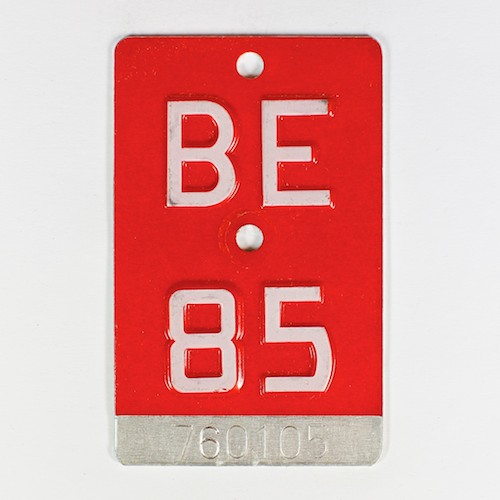 Der Kanton Bern wechselte 1954 direkt vom Banderolen-Design zum Schweizer-Norm-Design. Allerdings pflegte er dabei innerhalb der Norm als einiger Kanton die Besonderheit, dass er im selben Jahr die Fahrradkennzeichen mit unterschiedlichen Schriftarten prägte. Zwischen 1956 und 1959 in zwei und zwischen 1960 und 1988 in drei Schriftarten. Es wird vermutet, dass die unterschiedlichen Varianten auch von verschiedenen Produzenten hergestellt wurden.
