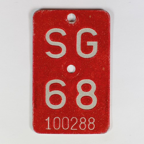 St. Gallen war der letzte Kanton, der diese grobkörnige Beschichtung für reflektierende Fahrradkennzeichen bis 1980 benutzte.