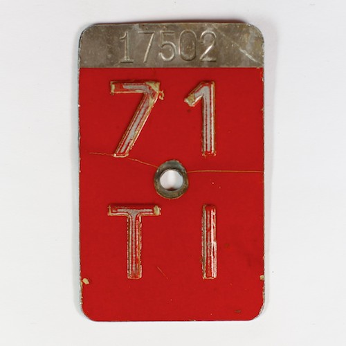 Fahrradkennzeichen mit der Seriennummer am oberen